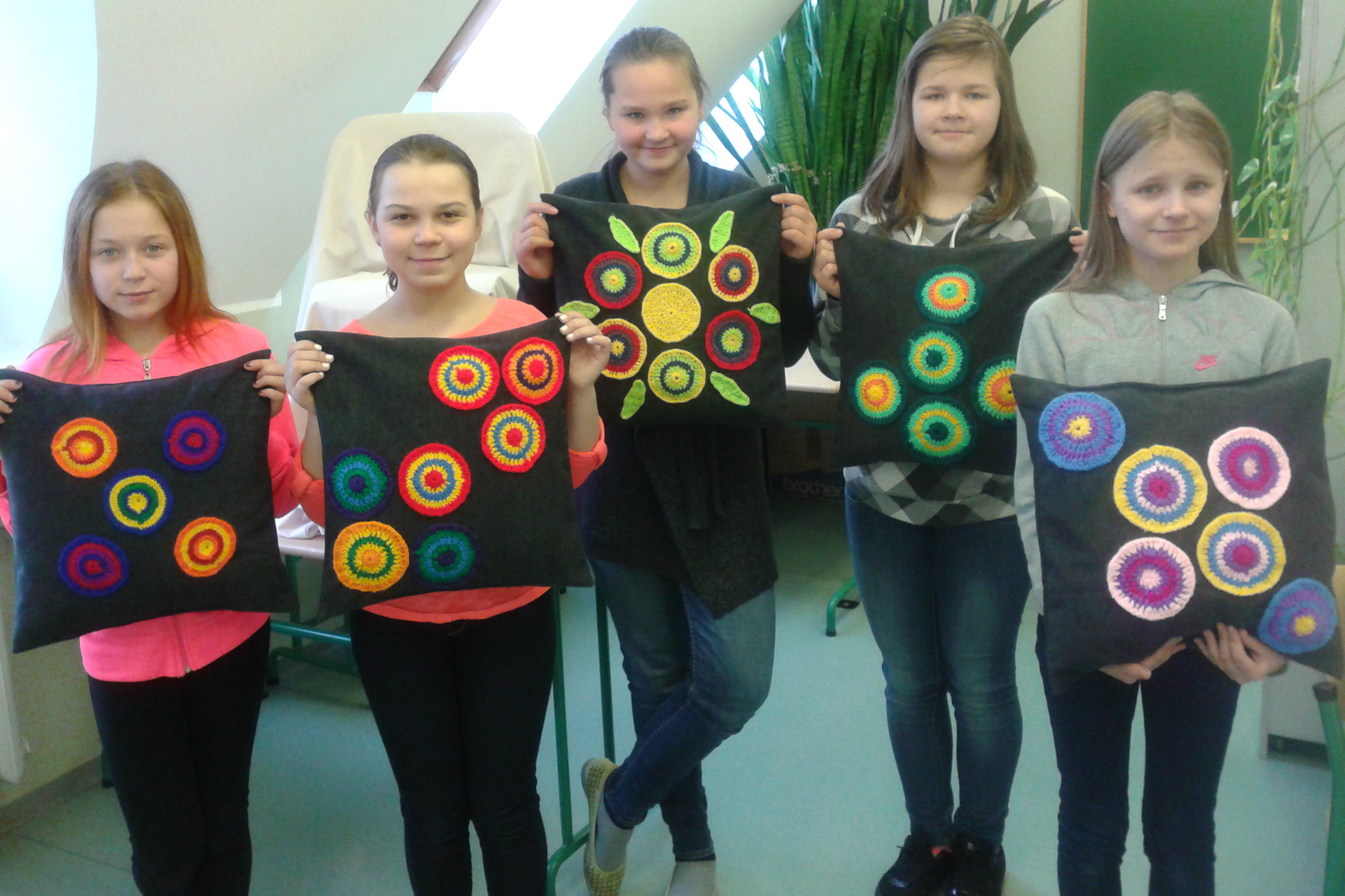 Lisaks toredale värviküllasele õpimapile valmis tüdrukutel ka padi, millel on heegeldatud motiivid. Kõikide motiivide värviskeemid on välja mõeldud lähtuvalt värvusõpetuse põhireeglitest. Töö oli huvitav ning andis tüdrukutele palju teadmisi, kuidas värvitoone omavahel sobitada. Kõige suurema punktisumma kogusid Liise-Lisete, Agnes ja Maria, kes olid väga tublid ka töö kaitsmisel. Vaata pilte!