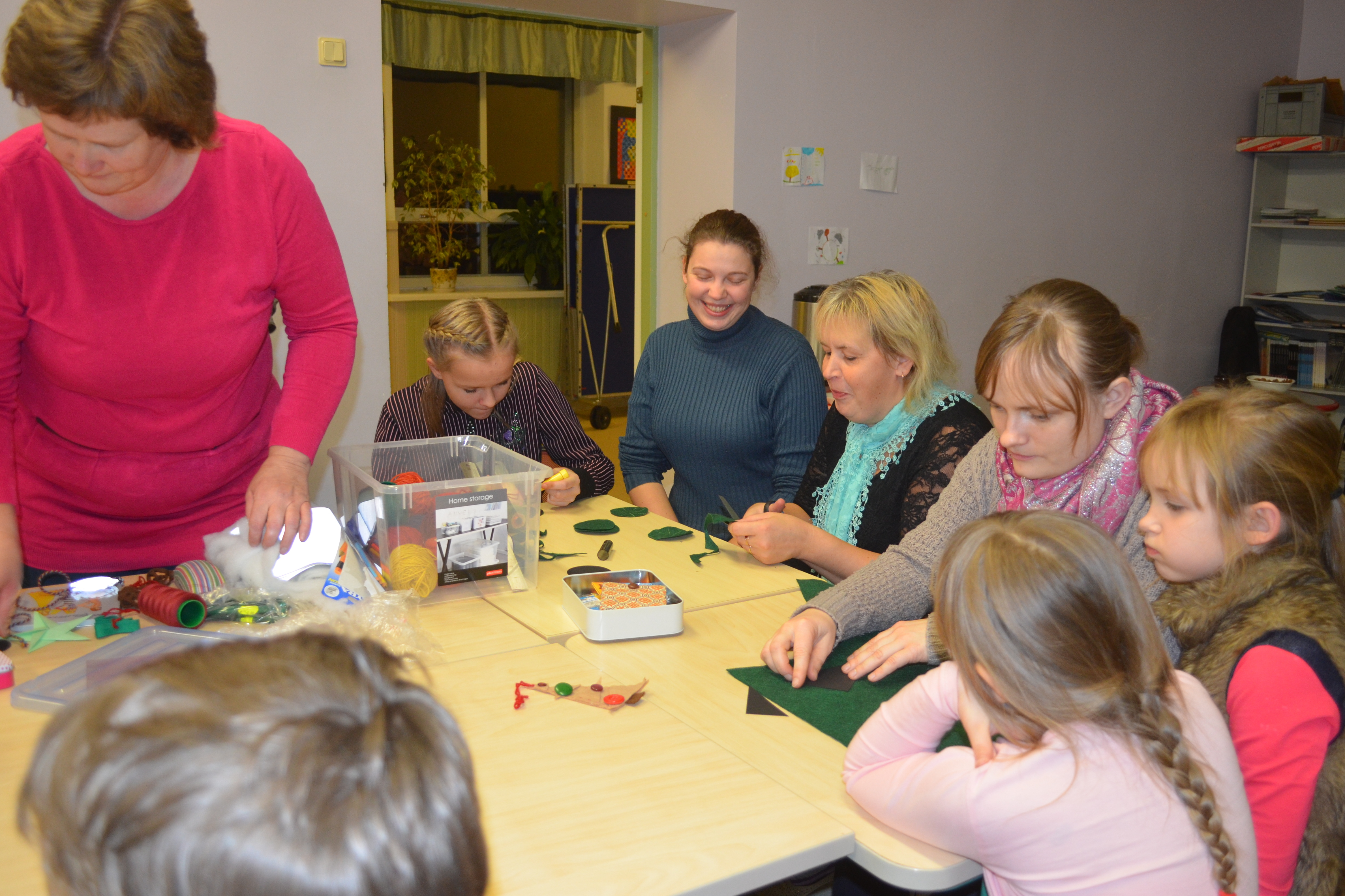 Ideid ja nippe isetehtud jõulukaunistuste valmistamiseks jagas piparkoogilõhnalises muusikaklassis lapsevanem Anneli Vilt. Osalejatel oli võimalus enda valikul meisterdada pehmest viltriidest, kaunistuspaelast ja pärlitest erinevaid ehteid, mida soovi korral riputada jõulukaunistuseks. Agaramad jõudsid juhendaja ettenäidatud näidete järgi teha endale kõik väljapakutud ehted ning lisaks ka helkuri. Pisemad meisterdajad said endale teha paberist tähekese või joonistada lihtsalt kauneid pilte.