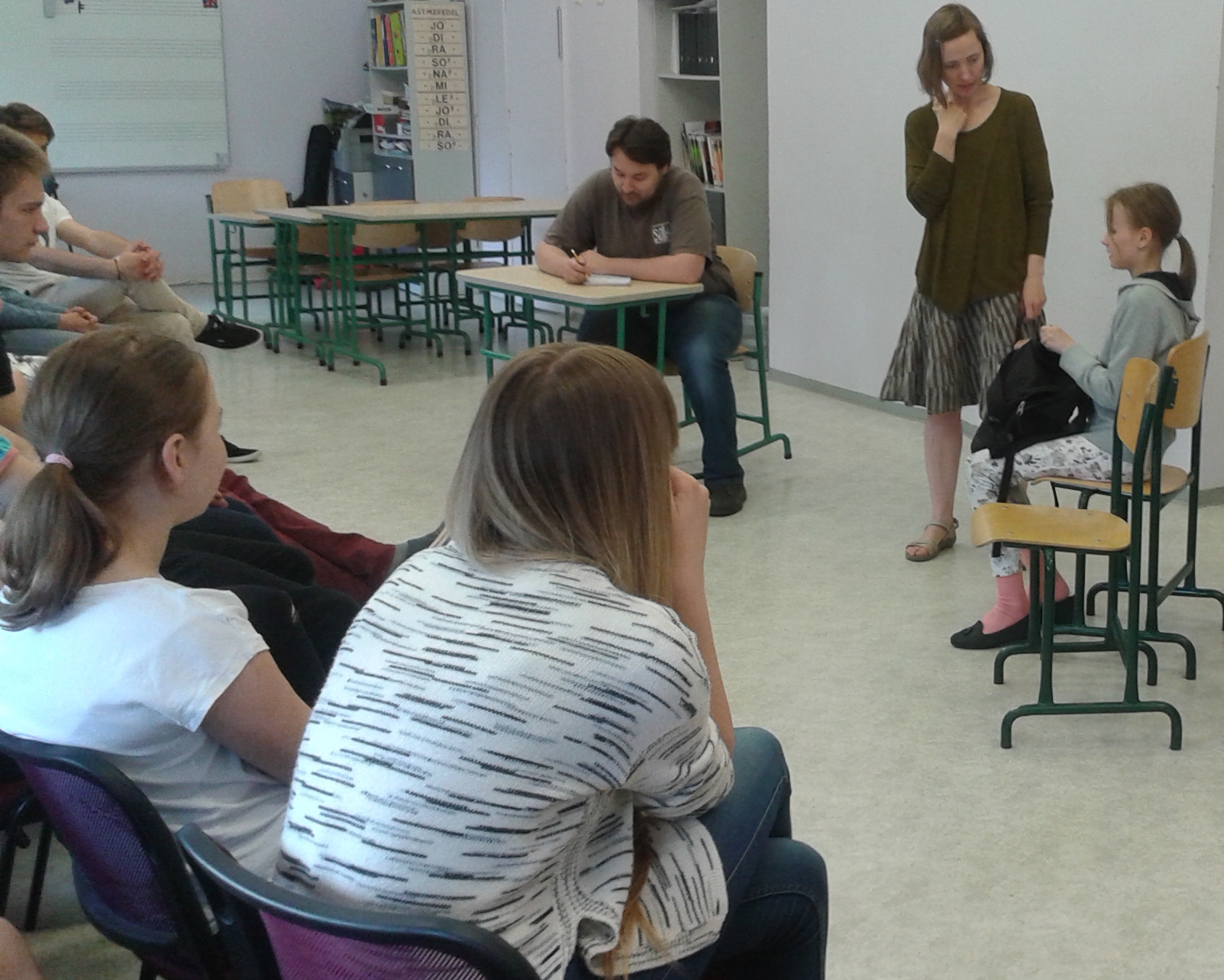 Liikumise „Salliv kool“ raames olid reedel, 15. aprillil, Ahja Koolis külas Tartu Lille Majast noorsootöötajad Auli, Mario, Helene, Liis ja Jerome, foorumteatrietendusega “Head suhted”.